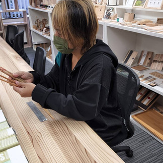 普段は会社が保持されている木材から加工するという制作方法なのですが、今回は既に形が仕上がっている木材の持ち込み加工ということで、作成するグッズも限られてくるというお話でしたが、ご担当者様もとても親身に相談に乗って頂き、色々考えた結果今回はお箸にすることになりました。